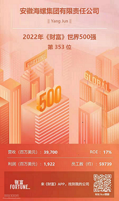 【taptap点点体育网讯】(安徽国贸网站消息)日前,《财富》杂志公布了“2022年世界500强企业”排名榜单,海螺集团以39,700百万美元的营业收入位居第353位,连续4年进入世界500强。