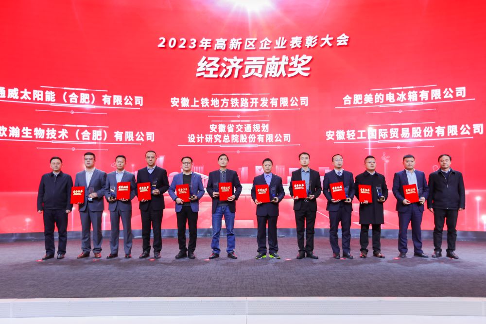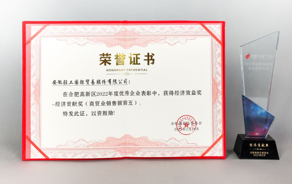 2月18日下午,合肥市高新区企业表彰大会在中安创谷隆重举行,会议表彰了2022年度对高新区经济效益、示范引领、综合效益等方面表现突出的企业,公司凭借良好的经济效益、较强的综合竞争力和企业形象,荣获了经济贡献奖(商贸销售额前五)。
