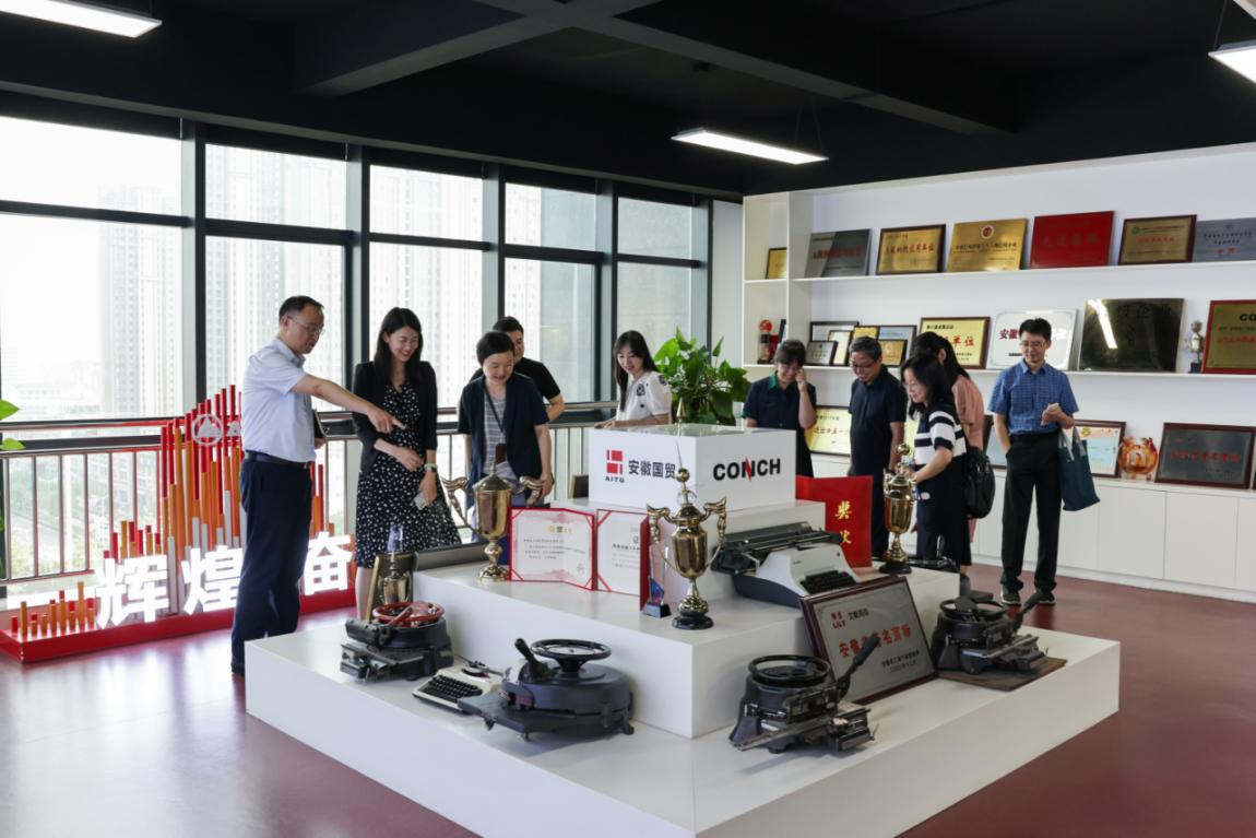 肖露副司长一行参观了公司荣誉墙和出口产品展厅,对公司展出的极具外贸历史特色唛头机、外经贸委相关荣誉证书等表现浓厚兴趣。