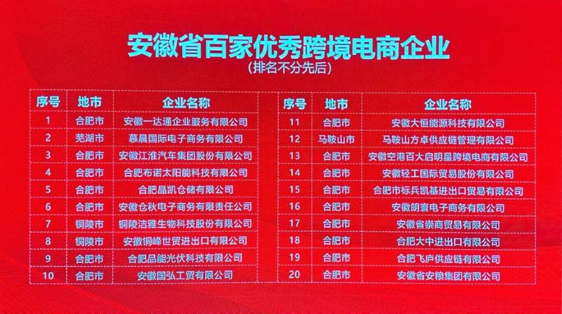 公司荣获“安徽省跨境电商企业20强”,公司及合肥大中均被列入“安徽省百家优秀跨境电商企业名录”。