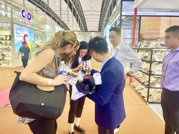 箱包、鞋类展位客流量也是络绎不绝,熙熙攘攘的展位内让人感到旺盛的商机和活力。热情饱满的参展人员,耐心细致地向客户介绍产品,将产品的特色、优势展现得淋漓尽致。值得一提的是,无论是定制化的箱包,还是材质多样化的鞋类产品,客户只要提出需求,给出图纸,我司专业的业务团队就能迅速提供包括设计、生产、服务等方面的全套方案,最大限度得想客户所想,实现产品品质、服务品质的双提升。