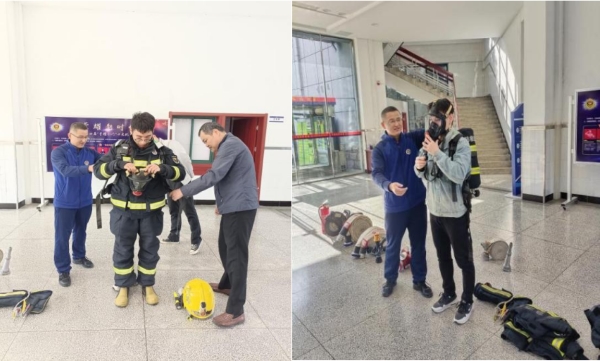 参观期间,消防员们向大家详细讲解了各类消防设备的识别和使用方法,演示了火场逃生与自救的方法。公司参观人员现场体验了消防救援服、自救呼吸器等相关器具的穿戴、消防水带的使用,并进行了火灾扑救模拟演练。