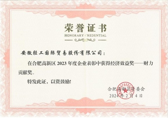 日前,合肥高新区管委会以“致敬创新,共筑未来”为主题,隆重举办2023年度企业表彰大会。本次大会旨在表彰过去一年中,为高新区经济社会发展作出突出贡献的优秀企业和个人。大会共颁发了“经济效益、招商引资、示范引领、科创金融、资质荣誉、综合效益”等6大类24项大奖,我司凭借亮眼的经营发展实绩,成功荣获2023年度经济效益奖-财力贡献奖。