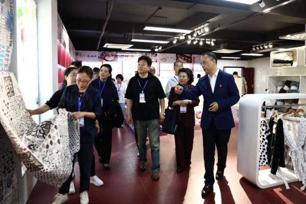 代表一行首先参观了公司13楼荣誉厅、出口产品展厅,对展厅内展出的各类产品和独特设计表示出浓厚兴趣。