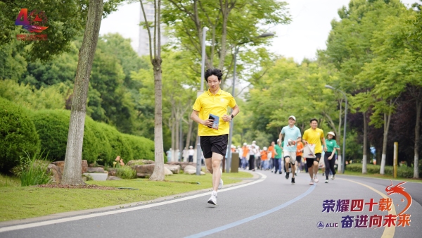 讲话结束后,在工作人员的指引下,毅行者们用身体排列组合,共同组成了“ALIC 40”的字样,庆贺公司40周年生日快乐。