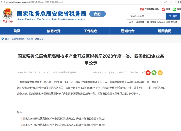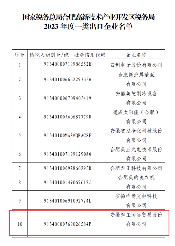 近日,国家税务总局合肥高新技术产业开发区税务局正式公布了2023年度一类、四类出口企业名单,taptap点点体育位列出口退税“一类企业”名录中,成为高新区唯一一家获此殊荣的外贸企业。