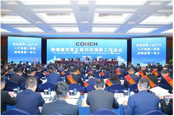 2024年11月4日,海螺集团第五届科技创新工作会议在总部海螺厅隆重召开。集团各产业板块、基层子公司负责人及专业技术骨干代表等200余人在主会场参加会议。各子公司领导干部及专业技术骨干在分会场以视频方式参加会议。省国资委党委委员、总会计师吴明到会指导,集团党委书记、董事长杨军主持会议并讲话,集团党委副书记、总经理朱胜利作工作报告。
