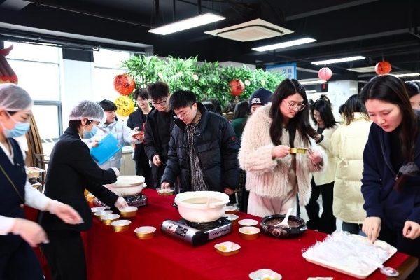 今年的“柿柿如意”版汤圆外皮柔软,内馅甜美,寓意着生活事业圆圆满满,大事小事皆事事如意。员工们一边品尝汤圆,一边交流谜底,气氛温馨融洽。“三百内人连袖舞,一时天上著词声”。此刻的食堂,虽无宫廷舞袖,却有员工们的笑语盈盈,节日的欢愉在空气中流淌。