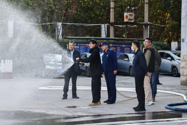 在消防设施器材讲解环节,消防救援员演示了消火栓操作方法,指导公司参观人员现场试穿消防服、应急救援服,进行消防水枪操作。大家现场动手、踊跃参与,体验一把消防救援。