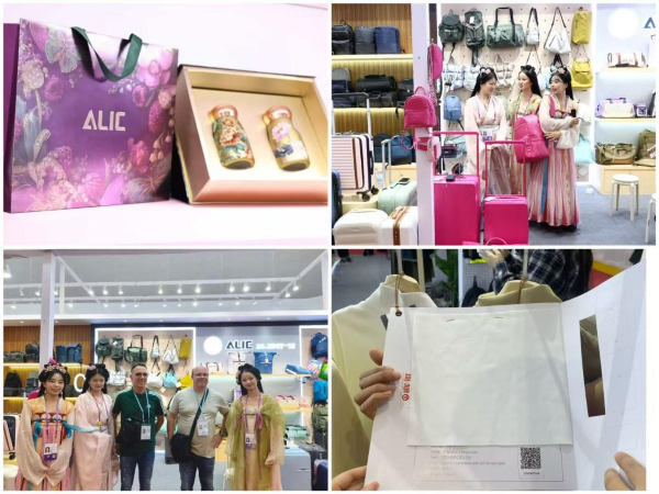 节日礼品展区展出的ALIC品牌礼品袋,采用环保可降解材质,设计上以典雅紫色为底,搭配精致的花卉与灵动蝴蝶图案,既符合绿色贸易倡导,又颇具东方美学设计。蝴蝶意象寓意"蜕变与新生",恰与公司开放创新、不断突破的发展理念相呼应。据悉,该系列产品凭借其高颜值与实用性的结合,吸引了来自欧洲、中东、东南亚等多国采购商驻足询价,部分客户已进入样品确认和订单细节洽谈阶段,展现出良好的市场前景。
