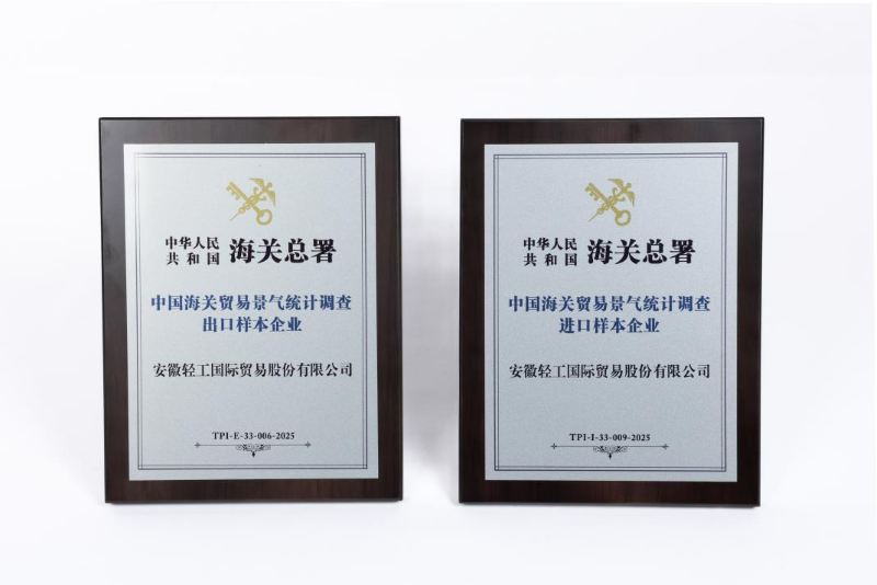 近日,我司凭借规范的企业治理、精准的统计工作及优良的信用资质,再度被中华人民共和国海关总署授予“中国海关贸易景气统计调查(出口、进口)双样本企业”称号。